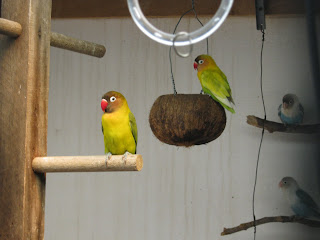 A criação de personatas é um pouco mais difícil que os roseicollis , mas sem maiores problemas . Os personatas são a espécie de agapornis que constrói o ninho de forma mais elaborada, fazendo ninhos cobertos com material carregado pela fêmea no bico.